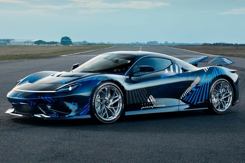 El primer súper coche eléctrico del fabricante italiano —al que presumiblemente seguirá un nuevo SUV de alto rendimiento también eléctrico que se dará a conocer antes de finales de este mismo año— viene a competir con modelos como el nuevo Lotus Evija, Lo primero que llama la atención del coche es tanto su línea como su diseño exterior, dotado de una aerodinámica muy trabajada para cuyo desarrollado el fabricante italiano ha contado con las expertas manos del expiloto de F1 Nick Heidfeld. Como ya es tradición en las realizaciones de Pininfarina, las líneas del diseño del coche son puras y muy limpias, al igual que las superficies, a fin de garantizar la mayor fluidez y capacidad de penetración ante la resistencia del aire.