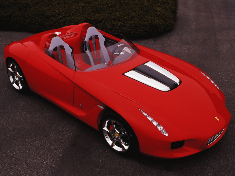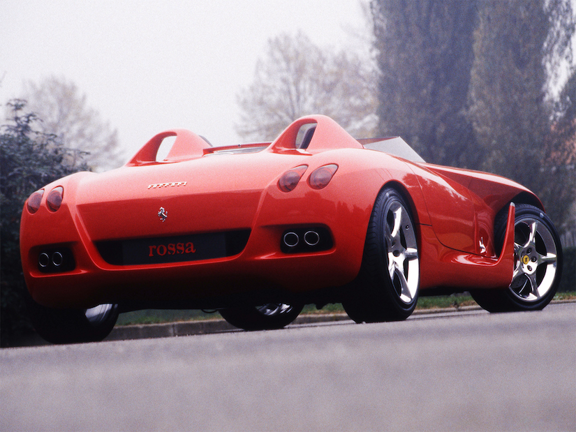 Para el diseño del Rossa, Pininfarina optó por un estilo de carrocería típicamente italiano, muy popular en los años 60 para competición y que representa la esencia más pura del automovilismo, o al menos, una forma de entender esa esencia. Las barchettas son coches sin techo, ni siquiera tienen una sencilla lona para tapar el habitáculo y, por tanto, son automóviles pensados únicamente para disfrutar o bien, como ya se ha comentado, para competir. La ausencia de techo permite, además, lograr diseños fluidos y sencillos, pero al mismo tiempo, espectaculares y muy deportivos, dos características que casan a la perfección con los objetivos de Ferrari y también de Pininfarina.