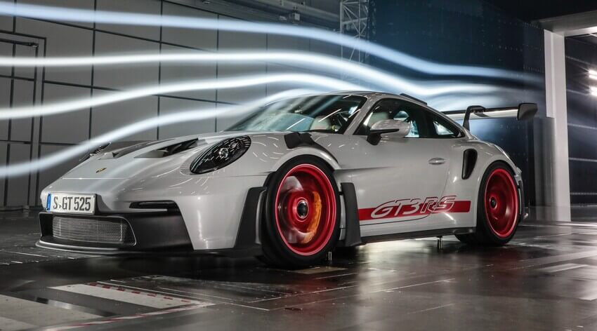 Tanto el motor como la construcción ligera inteligente de esta versión se han beneficiado de ello, pero sobre todo la mayor diferencia con respecto a otras versiones ya conocidas del 911 GT3 se encuentra a nivel aerodinámico, pues es ahí donde los ingenieros de la marca han echado el resto para dotar a esta versión RS de detalles suficientes como para marcar la diferencia con el resto de su familia. Detalles todos ellos inspirados directamente en la competición.