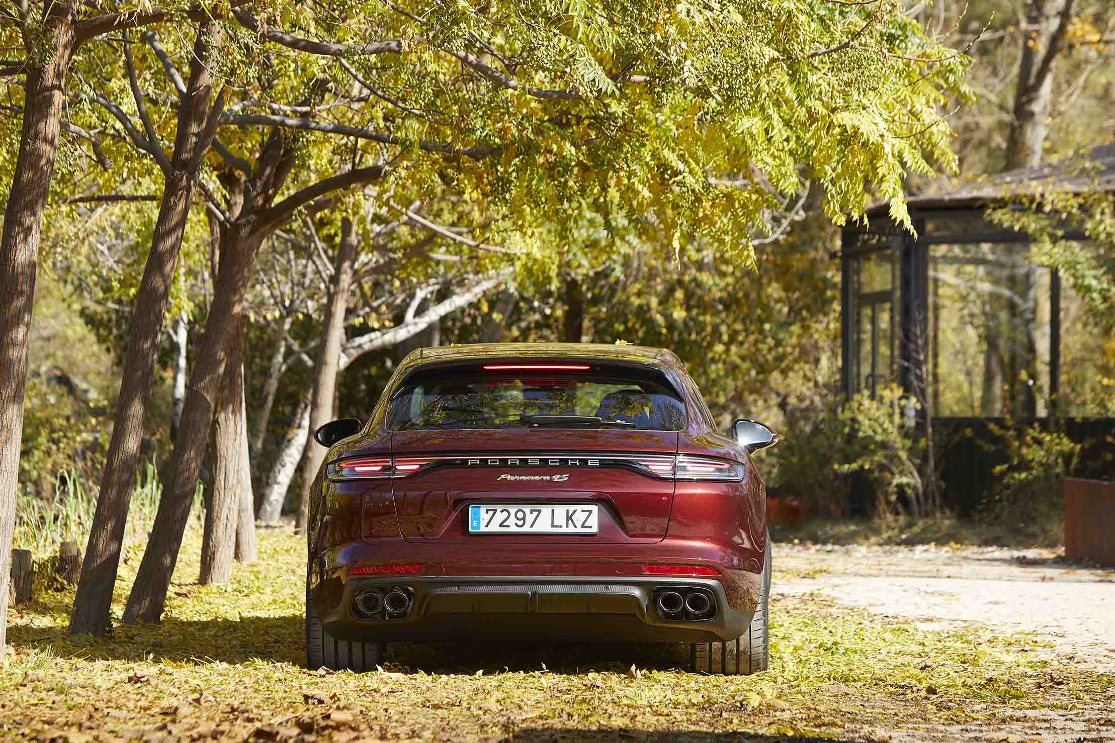 Trasera Porsche Panamera 2021Ahora, el modelo tope de la gama es el Turbo S. Con 630 CV y un par de 820 Nm, ofrece 80 CV más de potencia y 50 Nm más de par que el Turbo, el anterior modelo de combustión tope de gama. Esto se traduce en una mejora significativa de las prestaciones. En el modo Sport Plus, la aceleración de 0 a 100 km/h se completa en 3,1 segundos, y la velocidad máxima se sitúa en 315 km/h. El nuevo Panamera Turbo S está equipado ahora de serie con los frenos cerámicos Porsche Ceramic Composite Brake, de eficacia probada en circuitos de competición. Los discos de freno tienen un diámetro de 420 milímetros en el eje delantero y de hasta 410 milímetros en el eje trasero. Las pinzas de freno de los PCCB están pintadas en amarillo. En los modelos GTS se mantienen en color rojo como hasta ahora. Como novedad, están disponibles opcionalmente pinzas de freno negras (para los modelos GTS y Turbo S). El Panamera 4S E-Hybrid monta pinzas de freno en verde Acidgreen, mientras que en el Panamera y el Panamera 4 son de color negro.