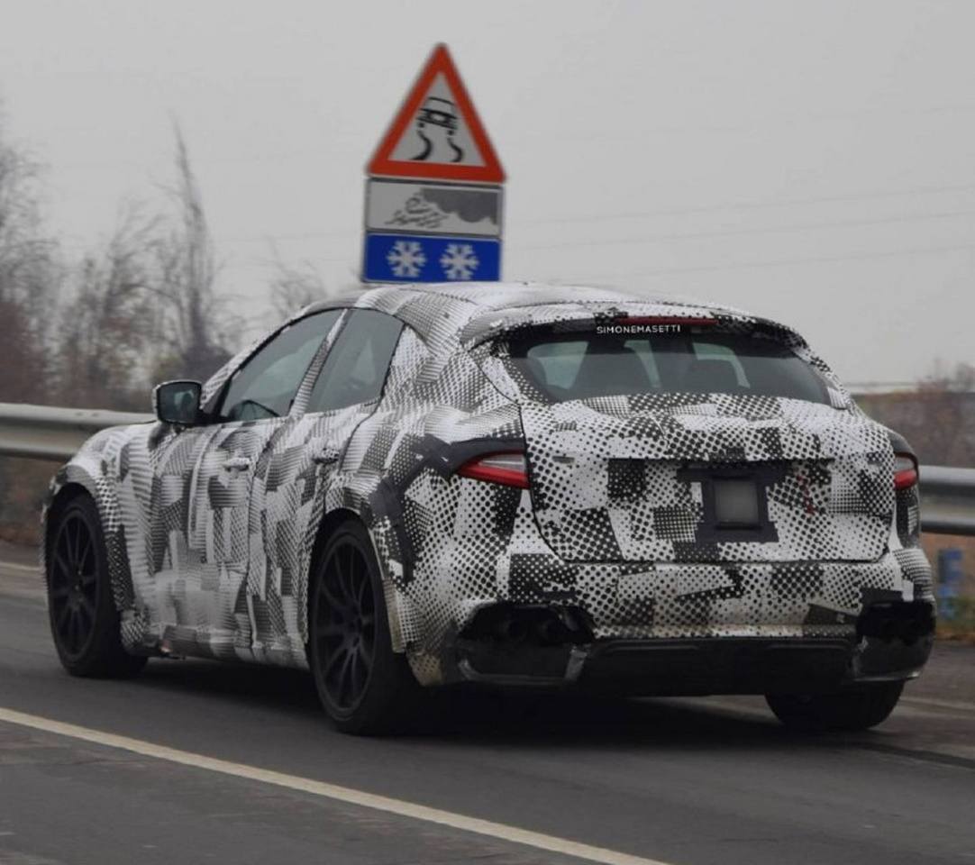 En la zaga, una pequeña porción del arco superior de la ventana trasera no estaba del todo cubierta por el camuflaje, dejando percibir un color azul claro sobre la carrocería. Cosa que no ocurre sobre la parte trasera del coche donde se han añadido numerosas pegatinas en el portón trasero para descaradamente enmascarar sus formas a la vista, especialmente las que permitían esconder las luces traseras del coche, mientras que tanto el paragolpes, como el difusor trasero, como las dobles salidas de escapes dobles o las llantas se mantienen iguales.