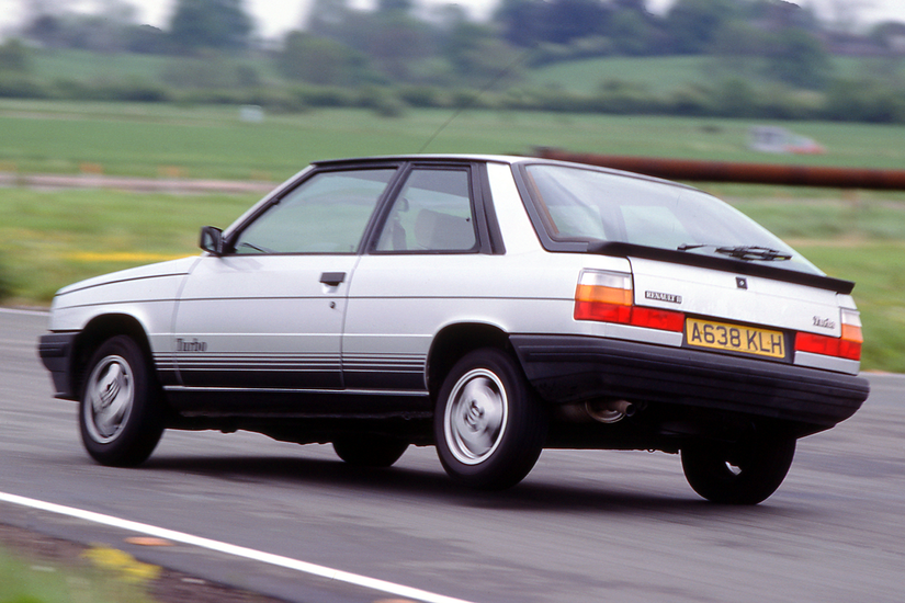 La primera versión del Renault 11 Turbo, aparecida en 1984, estaba animada por un cuatro cilindros de 1,4 litros –1.397 centímetros cúbicos–, y gracias a un carburador monocuerpo y un turbo Garet T2, rendía 105 CV. Una cifra que, con el restyling de 1986, subió hasta los 115 CV. Actualmente puede resultar una potencia bastante justa, pero el coche, que apenas llegaba a los cuatro metros de largo, no superaba los 900 kilos de peso, lo que permitía que pudiera acelerar hasta los 100 km/h en 8,5 segundos y alcanzara los 200 km/h. Además, presumía de un cambio manual de cinco relaciones, una suspensión más firme y baja que el resto de versiones –30 milímetros menos delante y 20 detrás, con estabilizadora trasera más gruesa– y de un diseño atractivo y diferenciador, que hoy resulta superochentero. También cambió los tambores traseros por discos.