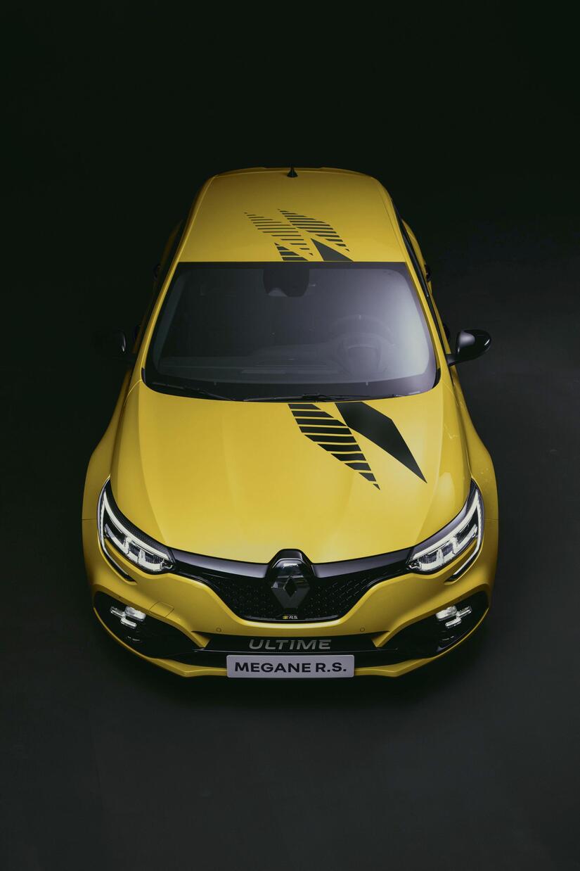 Megane R.S. Ultime presenta un diseño exclusivo que retoma los códigos visuales de Renault Sport con el doble rombo, incluyendo grafismos específicos inspirados en el diseño del nuevo logo Renault. Esta decoración está presente en el capó, techo (excepto si se equipa la opción de techo solar), parachoques trasero, las puertas y las aletas. En color negro mate, está en armonía con los cuatro colores de carrocería disponibles: Negro Brillante, Blanco Nacarado, Amarillo Racing y Naranja Tonic. En la puerta derecha también se incluye discretamente la fecha de creación de Renault Sport, 1976.