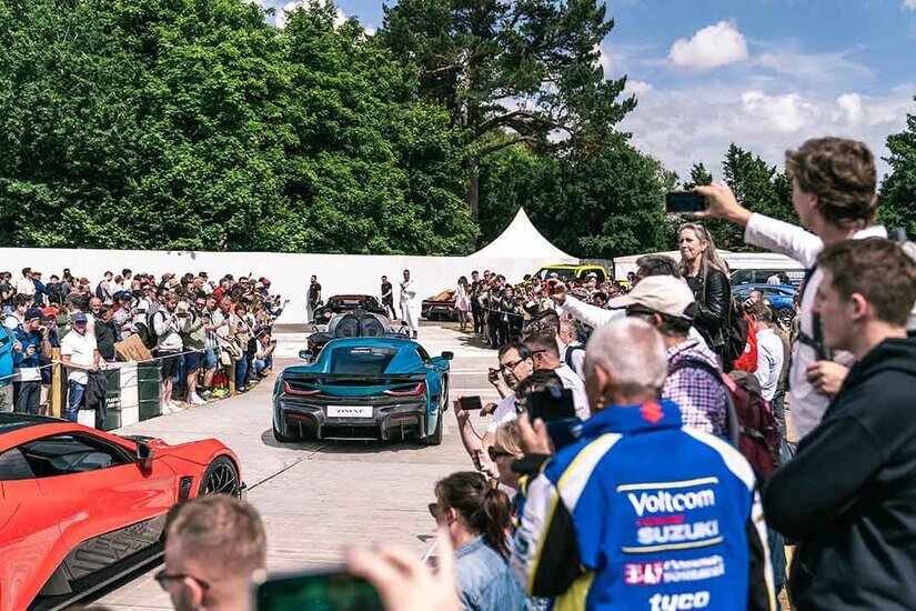 A finales del pasado mes de junio, hasta en ocho ocasiones el director de Pruebas y Desarrollo de Rimac, Miroslav Zrncevic, condujo el Nevera por los caminos de Goodwood para mostrar a los asistentes tanto el brutal potencial del coche como la docilidad de su manejo y control. La unidad 000, acabada en un tono personalizado del color Callisto Green mostró un espectacular comportamiento en cada sección de las 1,19 millas (1,91 km) del recorrido de la tradicional subida al castillo.