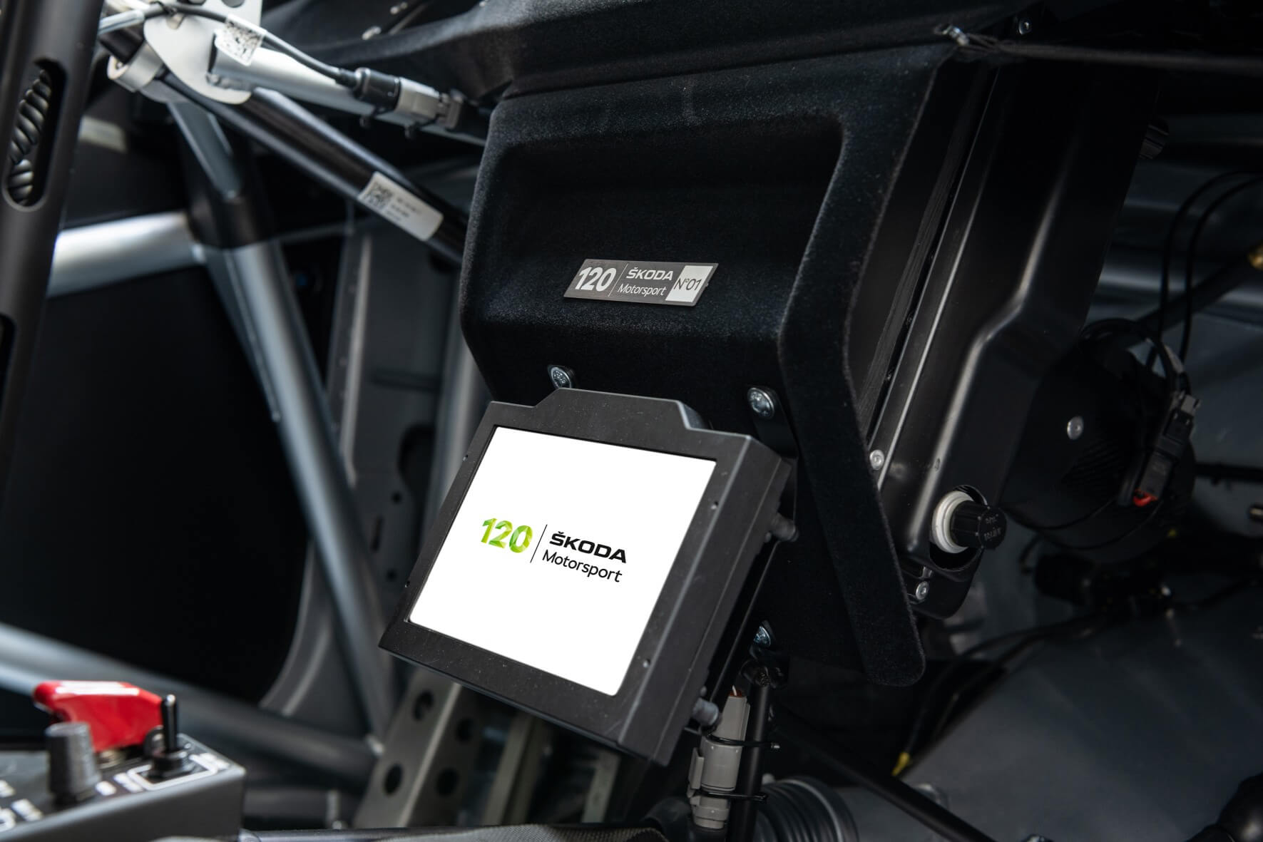 La configuración estándar incluye un paquete completo de accesorios internos adicionales, basados en la experiencia de los equipos de fábrica. Esto incluye bolsas o redes de almacenamiento para objetos personales, herramientas, piezas de repuesto o equipo adicional. Otros accesorios que mejoran el confort, como camel bags para el agua potable, botellas para los líquidos, cinturones, soportes y mucho más completan el paquete de extras. El equipamiento de esta edición limitada también trae una pantalla de bienvenida exclusiva Edition 120 para los dos monitores de cabina, una librea especial para el coche y una placa con el número de serie del coche. Un certificado de autenticidad, artículos útiles de ŠKODA, como una mochila, y una maqueta exclusiva del ŠKODA FABIA Rally2 evo (a escala 1:18) con un aspecto idéntico completan la oferta especial.
