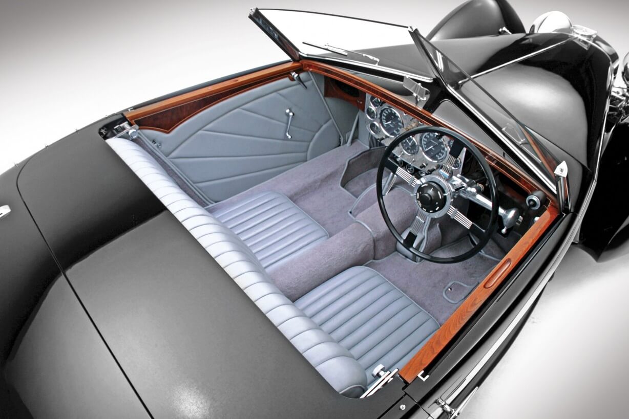 Sin embargo, cabe destacar que el Squire Drophead Coupé Corsica de las imágenes no está completamente original. Tras pasar por varios propietarios, acabó en manos de Rob Cole, propietario de Cole Classic Corporation, quien a su vez se lo vendió a Pat Hart. Este, aunque el coche estaba en perfecto estado de conservación, sometió al modelo a una profunda restauración sin escatimar en costes y durante esa restauración, se dio cuenta de algunas cosas.