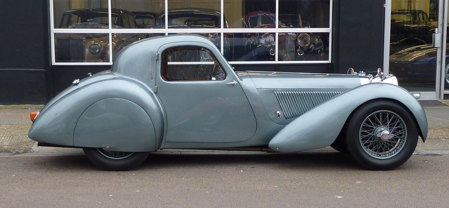 Se celebraba el Salón del Automóvil de Earls Court de 1938 y en el stand de SS Cars, un increíble coupé dejaba a los visitantes atónitos. Con una silueta larga y muy esbelta, tenía las ruedas traseras cubiertas y una cabina casi encima de dichas ruedas. Era elegante, armonioso y muy deportivo. Tenía pequeños detalles propios de la era “art decó”, pero desprendía un fuerte carácter británico con un habitáculo repleto de piel y madera.