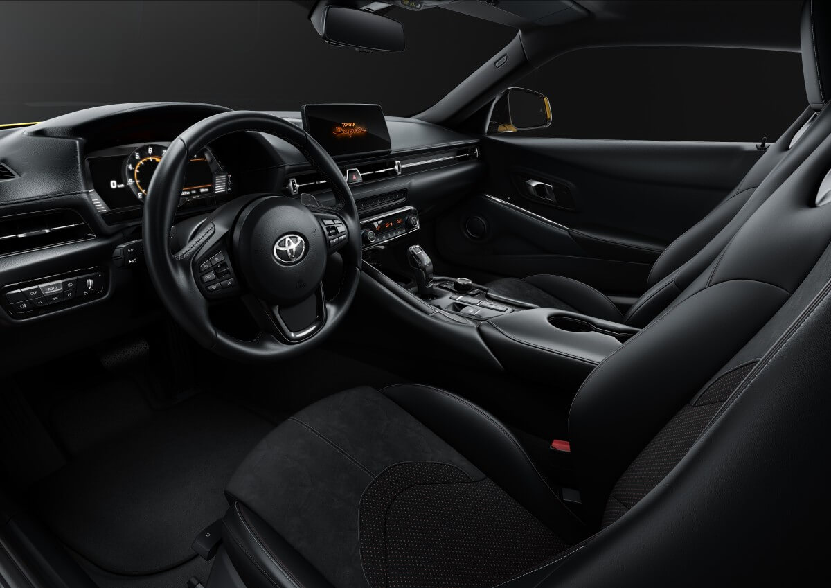 El nuevo GR Supra Pure de 258 CV es la pura esencia de lo que es un deportivo, con un equipamiento que incluye lo imprescindible para disfrutar al volante, centrándose en lo realmente importante, la conducción. Aun así, incluye de serie faros y pilotos LED, llantas de 18 pulgadas, asientos de diseño deportivo y con calefacción, pantalla TFT de 8,8’’ en el cuadro de instrumentos o sistema multimedia Toyota Touch 2 con pantalla táctil de 8,8’’, entre otros elementos.