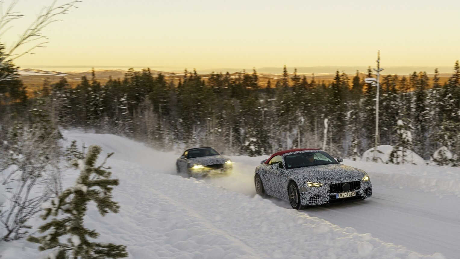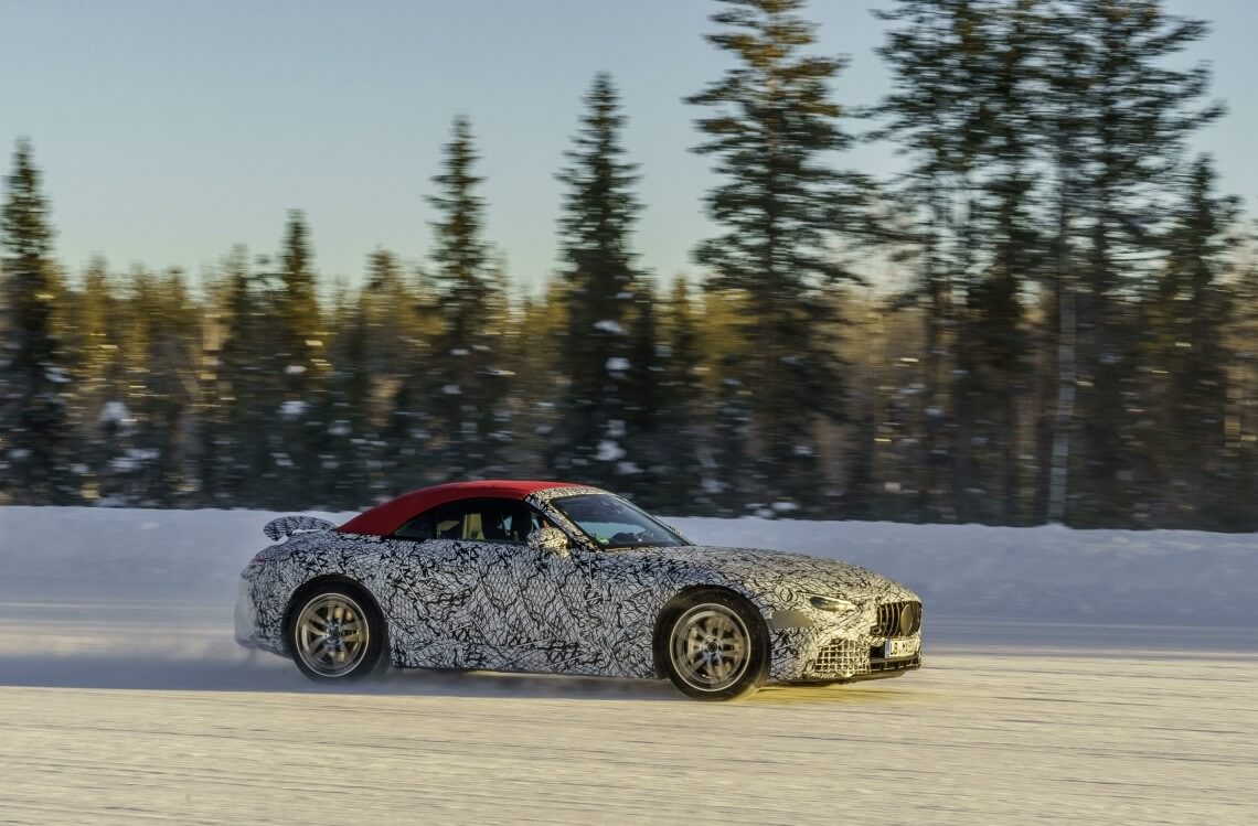 Unos 69 años después, la octava generación del SL, está a punto de entrar en la recta final de su fase de desarrollo. Mientras las pruebas en carretera con el Mercedes-Benz SL 300 tenían lugar en la autopista A81, los ingenieros de Mercedes-AMG realizan hoy sus pruebas en un centro de pruebas especial y cerrado en la nevada Suecia.