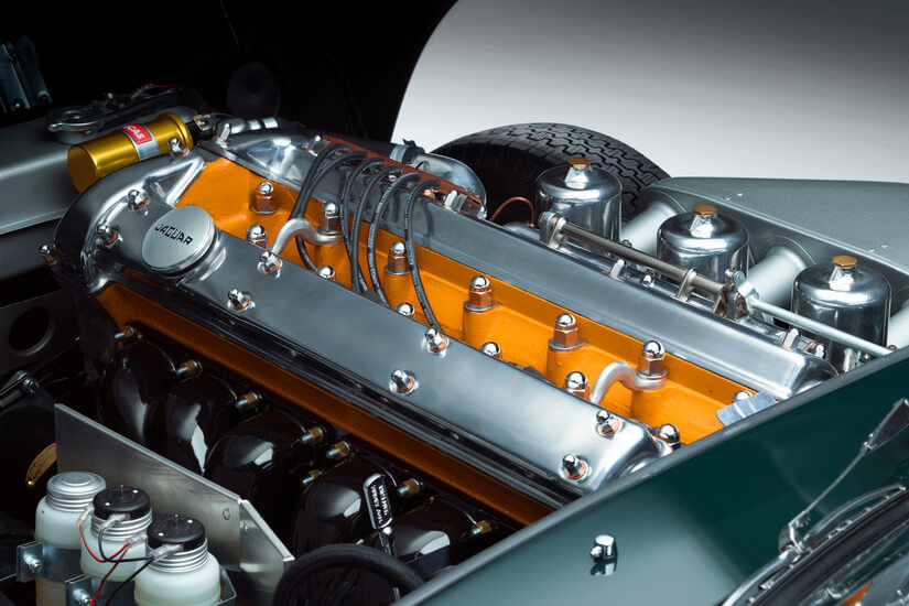El motor XK 3.8 de seis cilindros y 265 CV incorpora un radiador de aleación auténtico al estilo de 1961, con ventilador eléctrico de refrigeración y arranque electrónico para facilitar su uso en el día a día, así como un sistema de escape de acero inoxidable pulido. Este nuevo sistema de escape tiene las dimensiones exactas del sistema estándar de acero templado, pero ofrece un tono ligeramente más grave y una mayor longevidad.