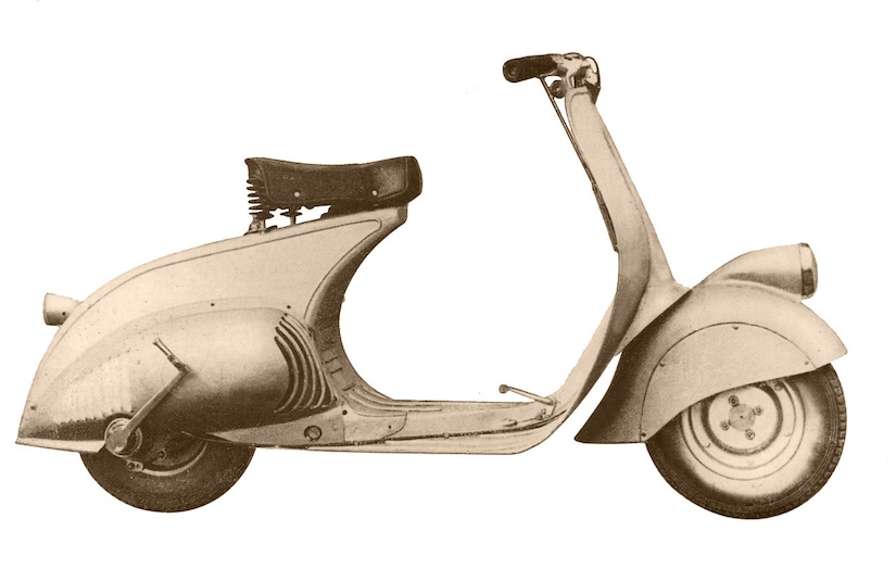 Una vez completado el diseño, quince unidades de esta nueva motocicleta fueron presentadas el 23 de abril de 1946 en el Club de Golf de Roma, siendo esta fecha y este lugar como el punto cero de la motocicleta transalpina más famosa.