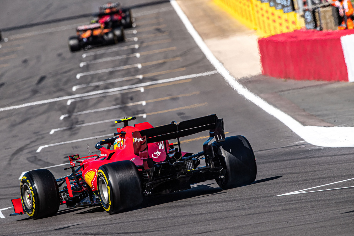 Carlos Sainz estaba marcando tiempos similares a los de su compañero Charles Leclerc el día sábado, hasta el momento de la Q3 donde el monegasco marcó un tiempo de 1:26.828 que lo dejó en una gran cuarta posición, mientras que Sainz solo pudo ser noveno con Pérez, los McLaren y Russell entre los dos pilotos de Ferrari.