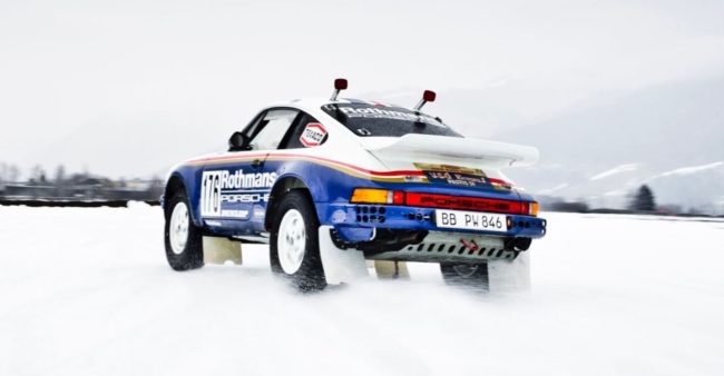 Walter Röhrl disfruta en la nieve con el Porsche 953 del Dakar