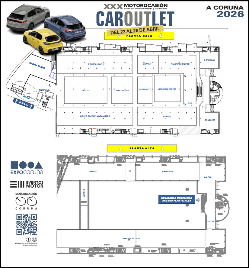 O Salón CarOutlet Coruña regressa o próximo mês de abril para a ExpoCoruña e mantém a duração das suas quatro jornadas, celebrando de 23 a 26 de abril durante todo o dia, das 11h00 às 20h00.
